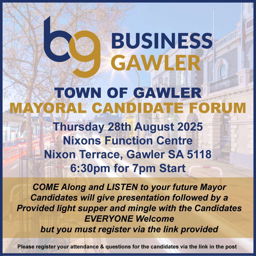 By registering, you consent to Gawler Business collecting and using your personal information (e.g., name and email)